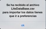 3º Una vez preparado el archivo LiteDataBase.csv desde una hoja de cálculo. ( entendemos que el usuario sabe manejar hojas de cálculo ), se puede enviar el mismo, para abrirlo en iPad o iPhone, guardando el archivo en Dropbox o enviandose un e-mail adjuntando el archivo.